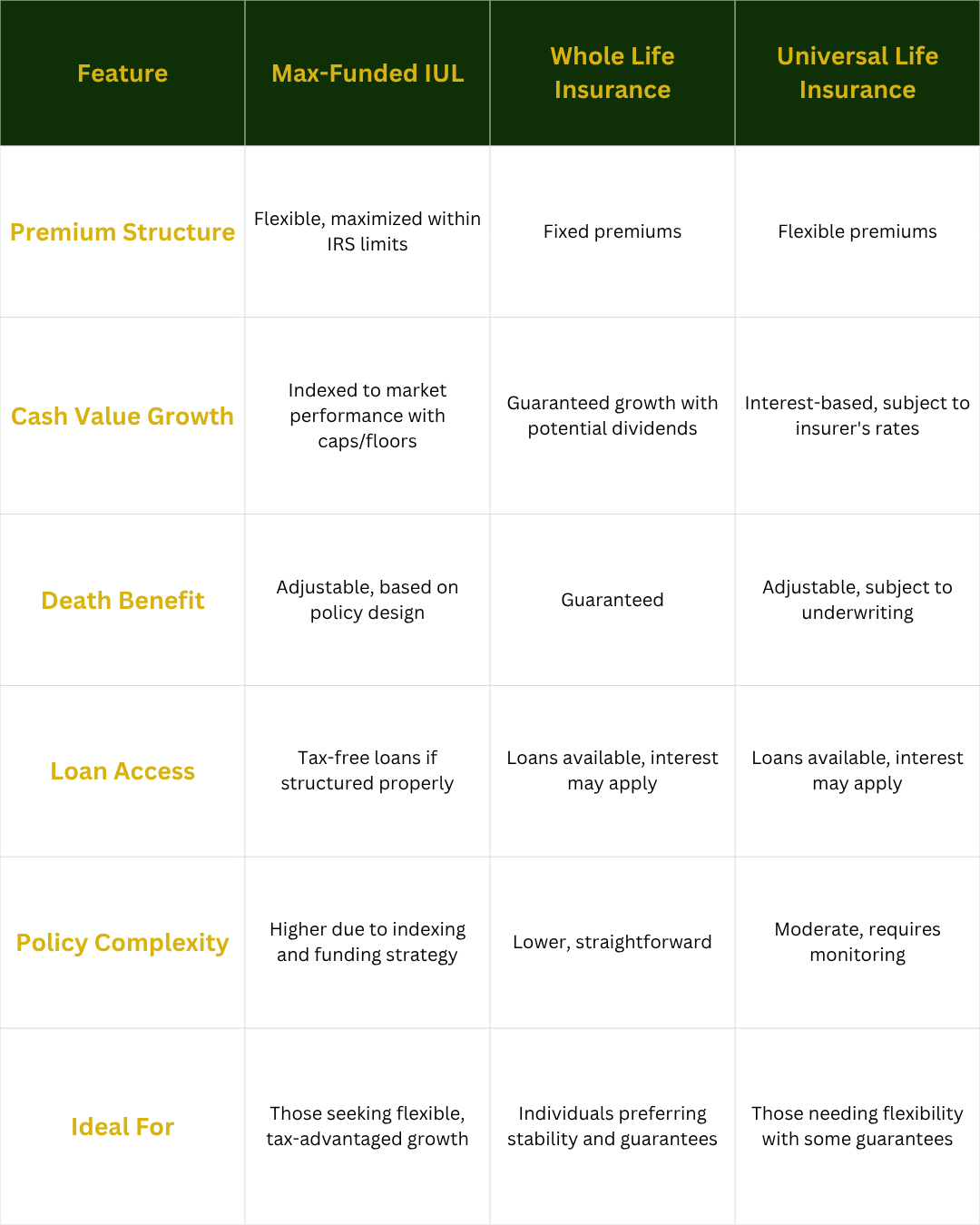 Indexed Universal Life (IUL): Cash value growth tied to a market index with downside protection→
